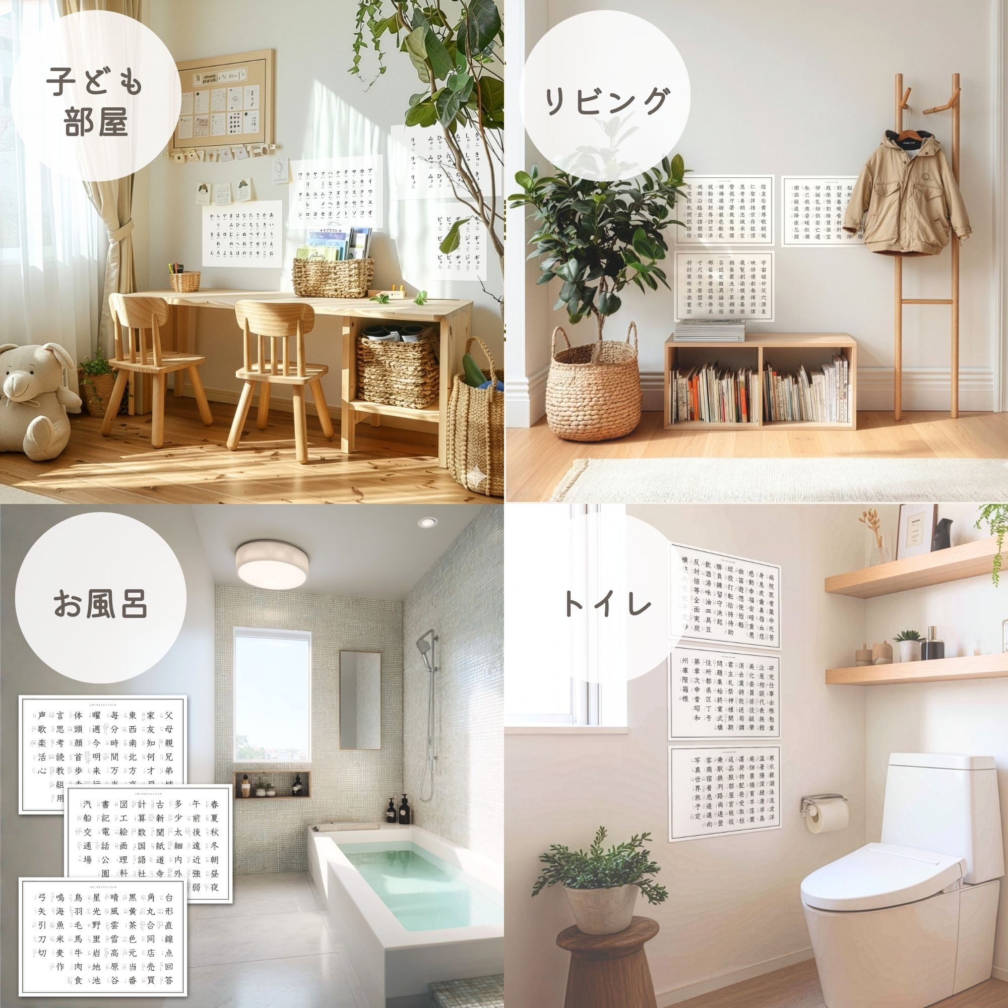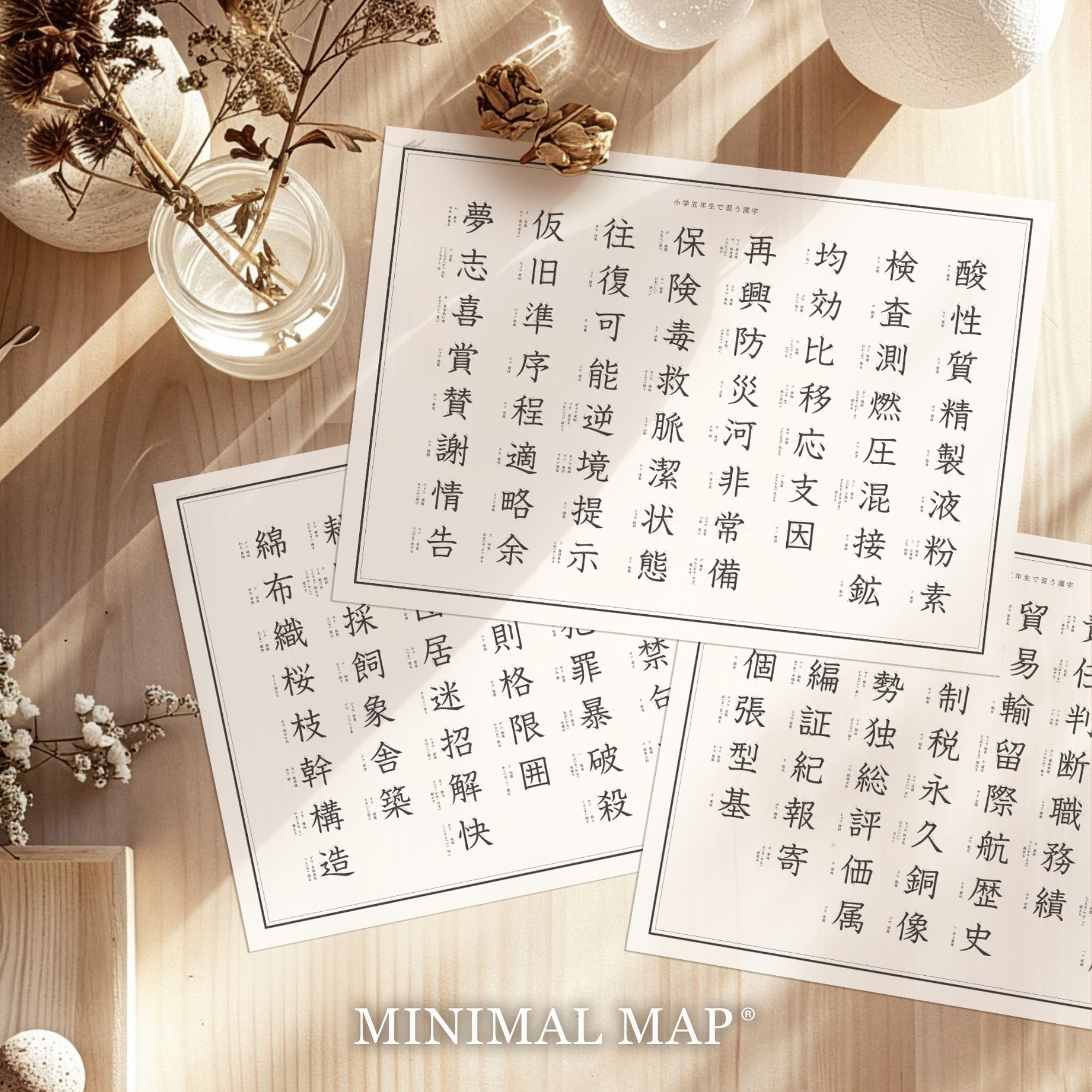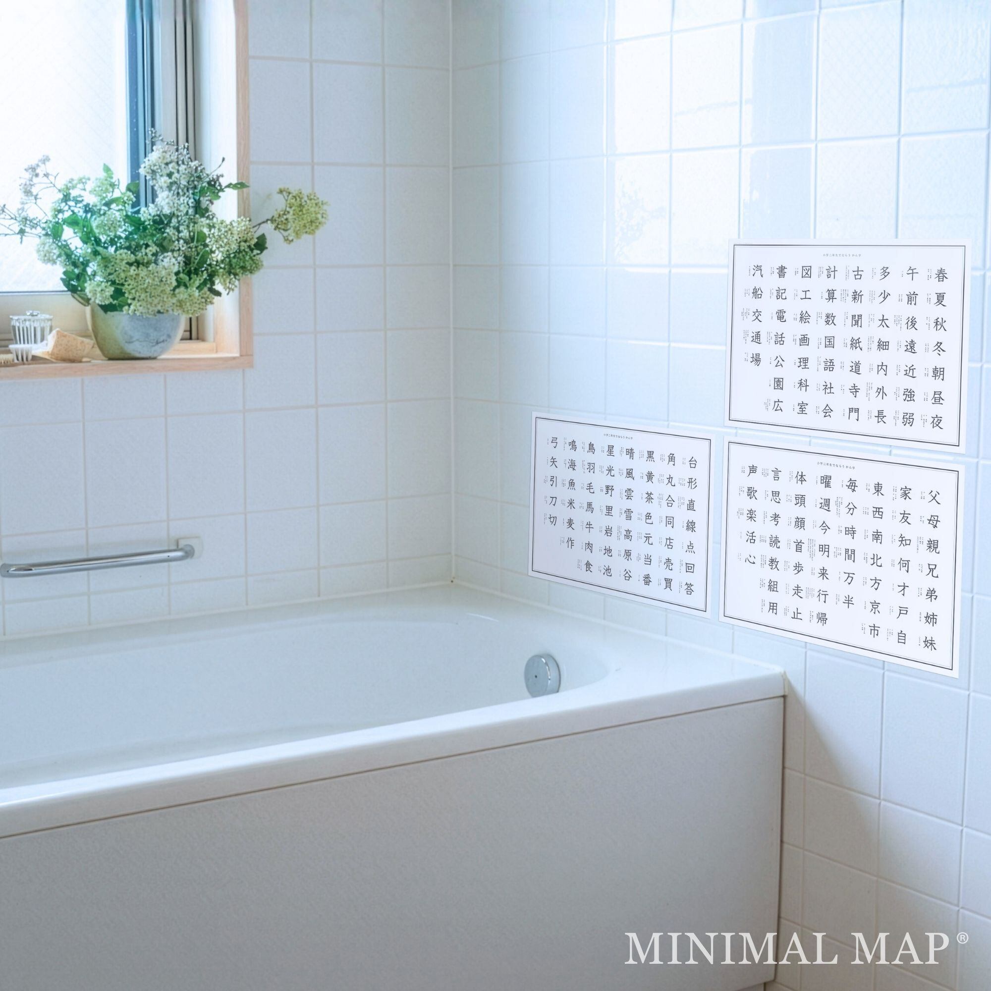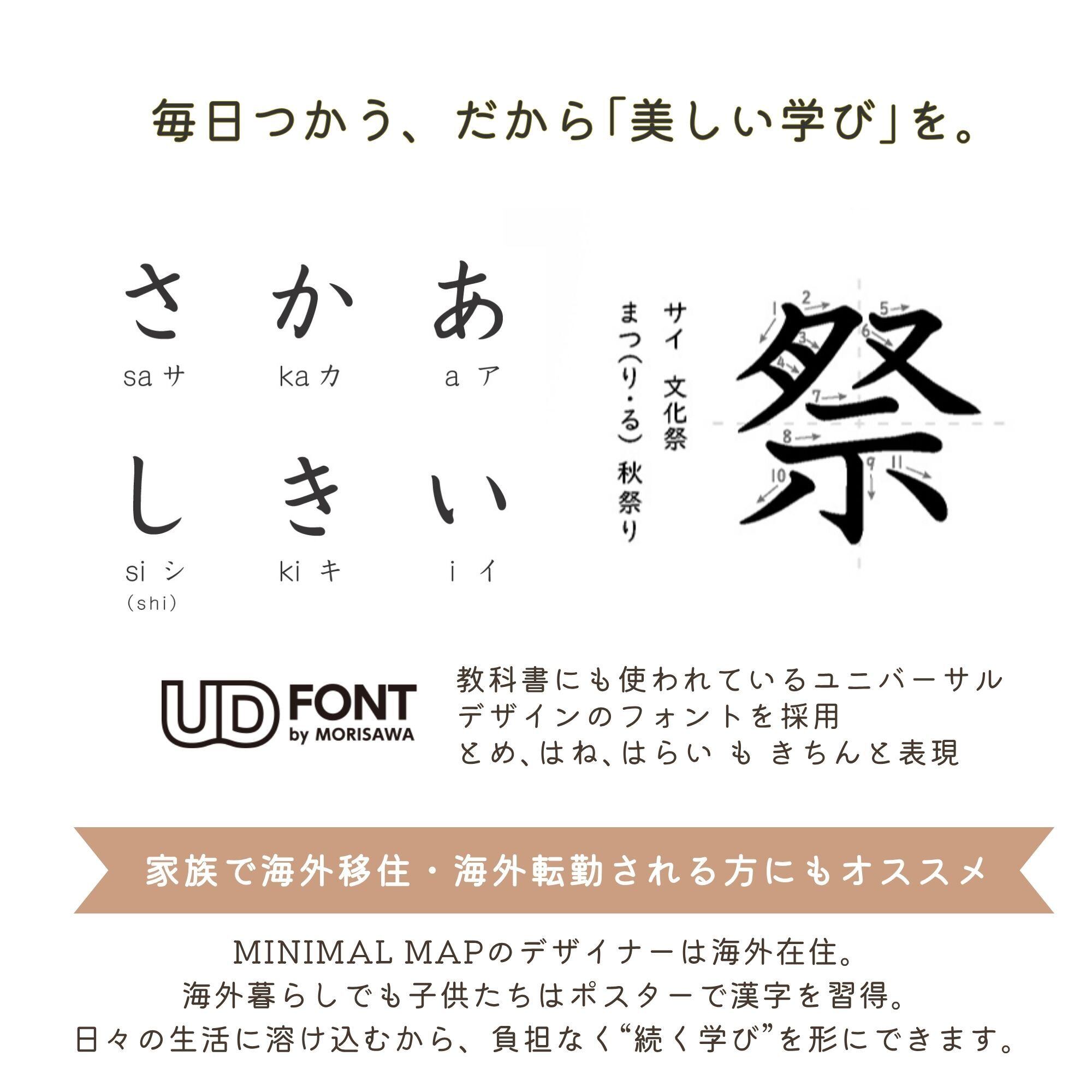 学びを贈る お風呂OK学習ポスター|ミニマルマップ(ひらがな/カタカナ/漢字1–6年)