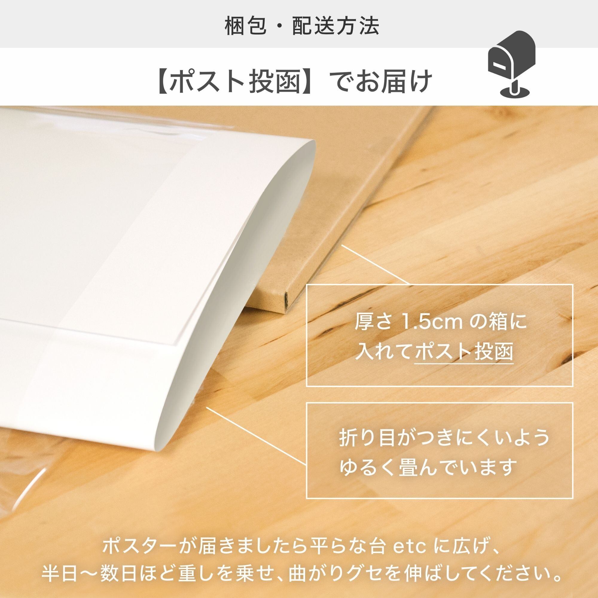 折り目がつきにくいよう、ゆるく畳んで、厚さ1.5cmのメール便専用ダンボールにてお届けします。