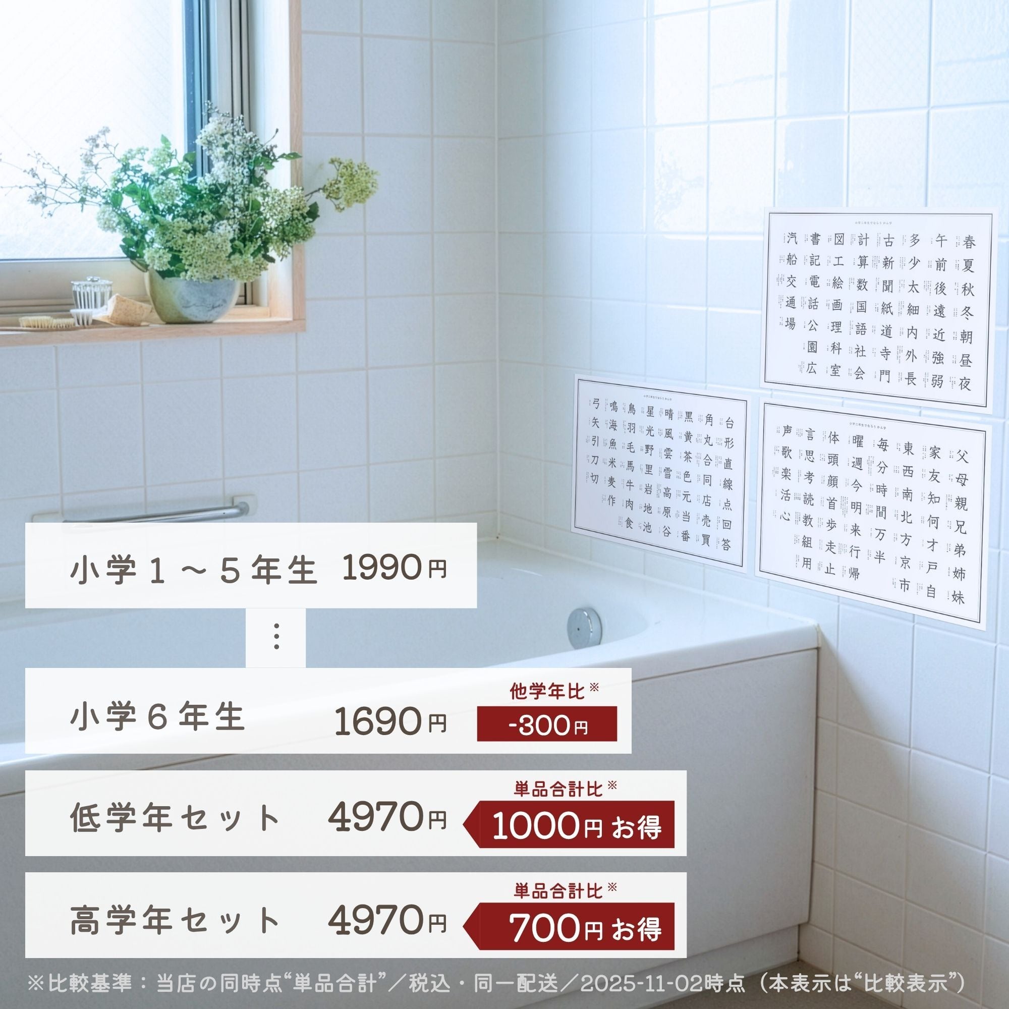 (一部、意味のつながりを大切にした例外があります。たとえば小学6年生の「吸」の例は“吸血鬼”。少し先の漢字ですが、自然な理解を優先しています。)